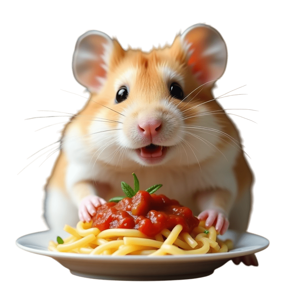 パスタを食べるハムスター⑤